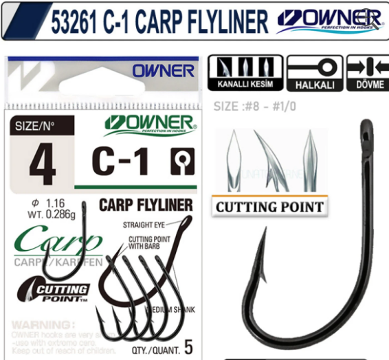 Haczyki Owner Carp FlyLiner/ Straight C-1 #1-4szt