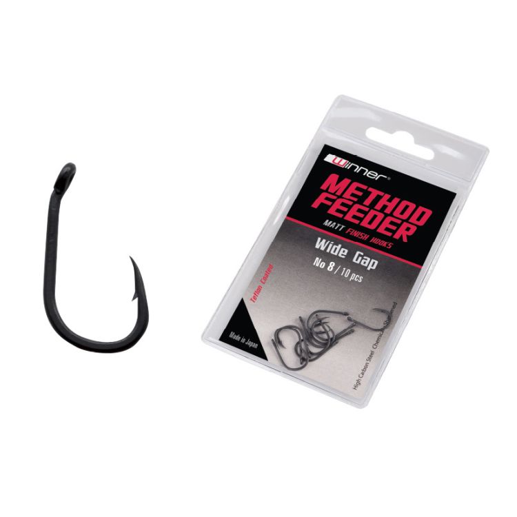 PARAMETRY PRODUKTU Haczyk wędkarski z oczkiem wykonany w Japonii z najwyższej jakości wysokowęglowej stali, chemicznie ostrzony. Szczególnie polecany do łowienia ryb techniką method feeder. Pokryty innowacyjną, wytrzymałą powłoką Black Teflon. Szeroki łuk kolankowy haczyka oraz wydłużony grot pozwalają na użycie różnego rodzaju twardych przynęt (mini kulki, pellet) przede wszystkim na włosie. Odpowiedni profil haczyka oraz mikro zadzior dobrany został w taki sposób, aby jak najbardziej ułatwić hol ryby i uniemożliwić jej wypięcie się.