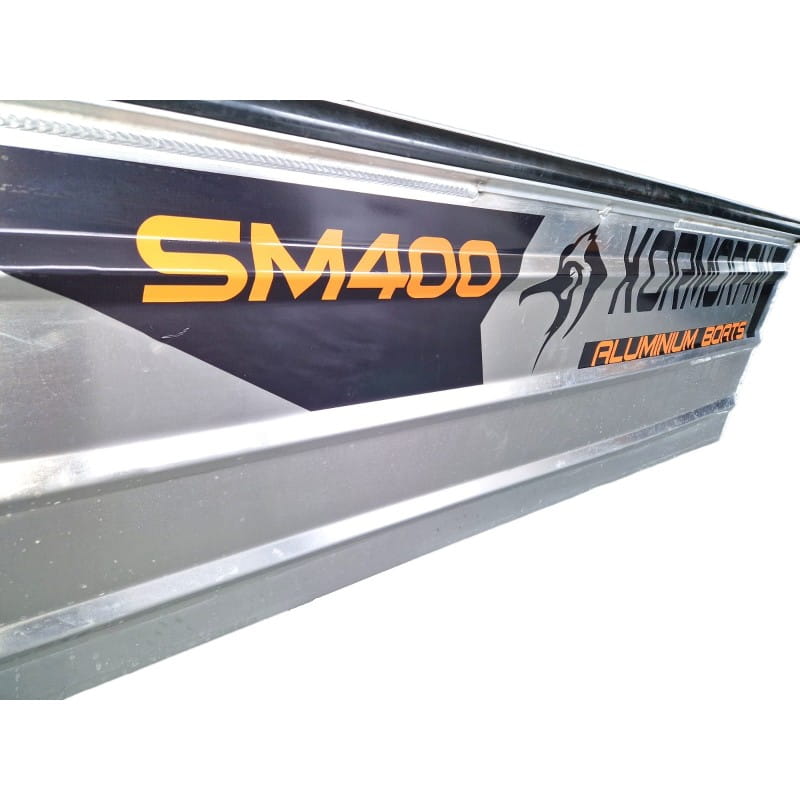 ŁÓDŹ aluminiowa płaskodenna KORMORAN SM400L Pawęż L (długa stopa) 54cm