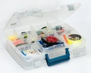 Dwustronne pudełko składające się z dwóch osobnych, łączących się ze sobą pudełek. Każde posiada regulowany przy pomocy przegródek środek.