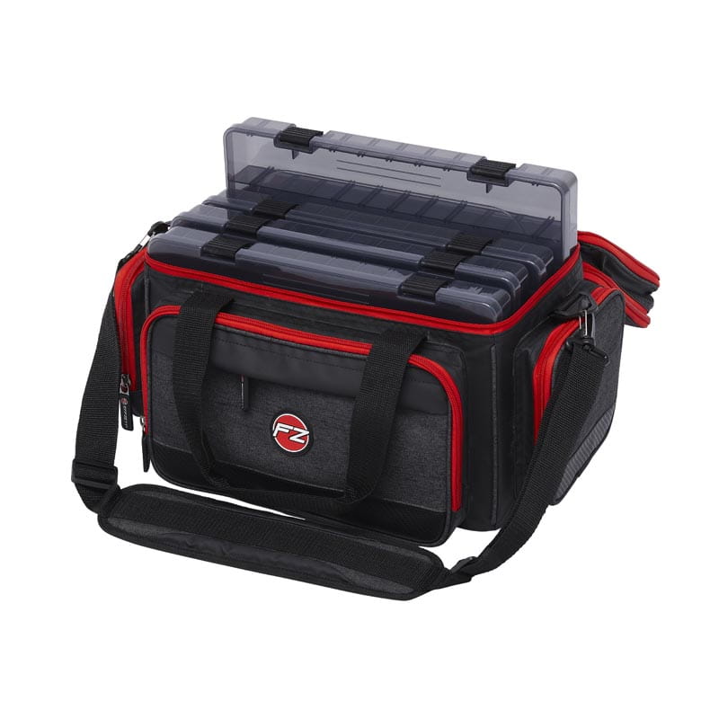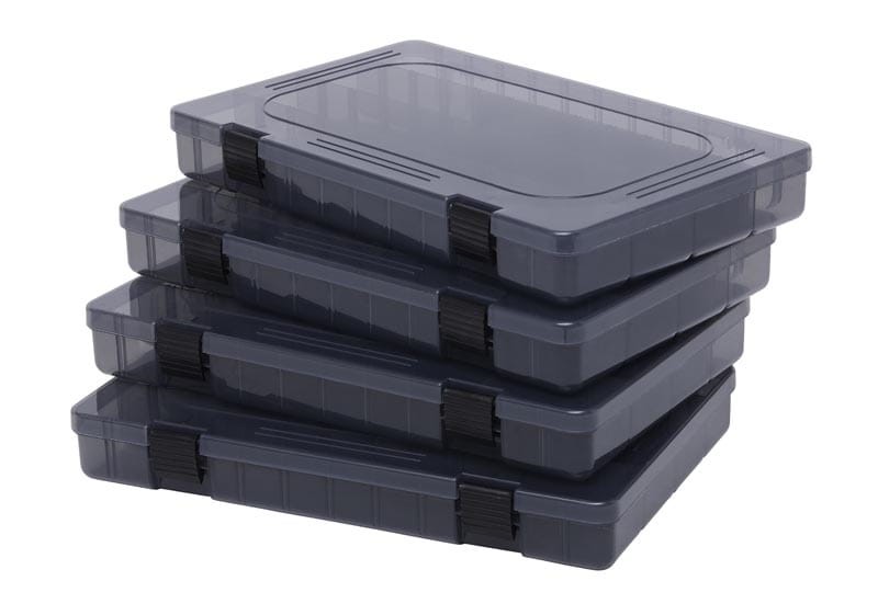 • Zawiera 4 pudełka na przynęty w rozmiarze „L” (36 x 22,5 x 5 cm) w kolorze gunsmoke
