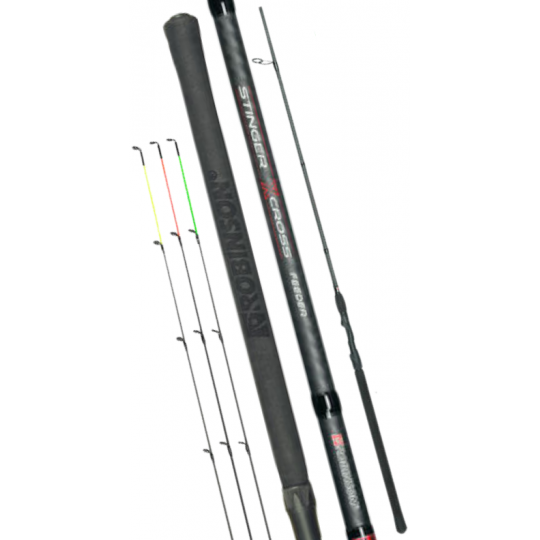 Stinger X-CROSS Feeder to seria dziesięciu modeli feederów, zaprojektowanych do łowienia z koszyczkiem zanętowym. Doskonale sprawdzą się zarówno na wodach stojących, jak i płynących, nawet o dużym uciągu. Wędziska są szybkie, mocne i polecane do połowów wszelkich gatunków białej ryby. W komplecie znajduje się jedna szczytówka szklana i dwie z włókna węglowego, co pozwala na dopasowanie wędziska do indywidualnych potrzeb.