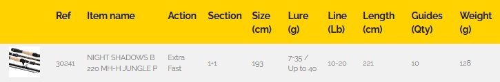 Model Jungle Poacher B 220 MH-H zasila serię Illex Night Shadows aby sprostać wymaganiom wędkarzy, którzy regularnie łowią na spinning w mocno zarośniętych miejscach. Nowa odsłona tego wędziska jest lżejsza, dłuższa i mocniejsza, z krótkim dolnikiem, aby poprawić rzuty w miejscach trudnodostępnych. Blank o szybkiej akcji jest responsywny i pomaga dokładnie odczytać dno, a także ma dużo mocy, aby pewnie zacinać ryby i umożliwić prowadzenie ich z dala od zaczepów.