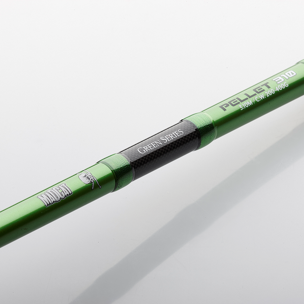 Wraz z ewolucją wędkarstwa sumowego, ewoluuje również MADCAT. Nowe wędzisko Green Pellet nie ma już długości 3,60m, ale 3,10m. Powód? Łowienie na pellet nie odbywa się już w stylu karpiowym, wędziska są teraz przeważnie ustawiane na pionowo w trójnogu. W ten sposób linka jest unoszona wyżej z wody, co zmniejsza ryzyko jej zaczepienia. Kolejną zaletą jest to, że krótsza długość wędziska sprawia, że łowienie z łodzi jest o wiele łatwiejsze i przyjemniejsze. Zbudowane z wykorzystaniem oryginalnego mocowania kołowrotka Fuji DPS.